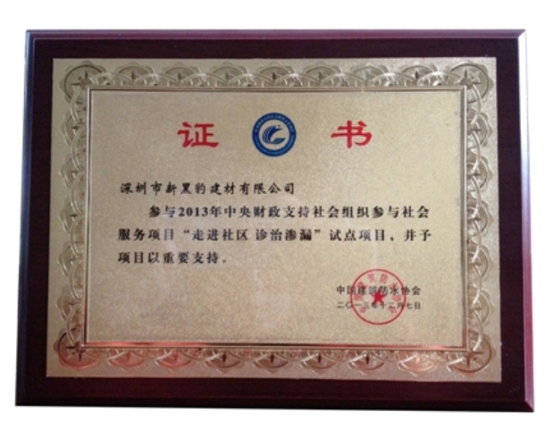 我公司積極組織參與“走進(jìn)社區(qū) 診治滲漏”試點(diǎn)項(xiàng)目證書