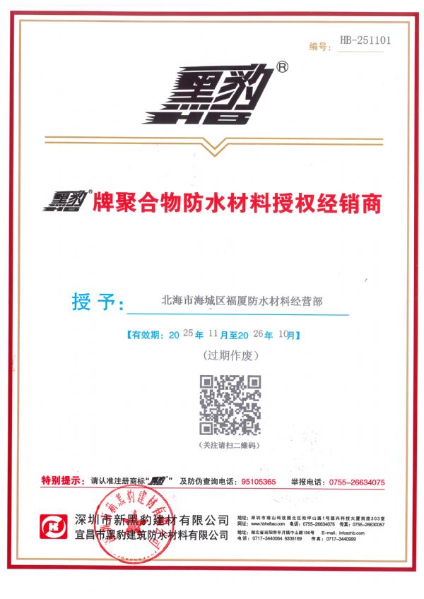 授權(quán)經(jīng)銷商--北海市海城區(qū)福廈防水材料經(jīng)營部
