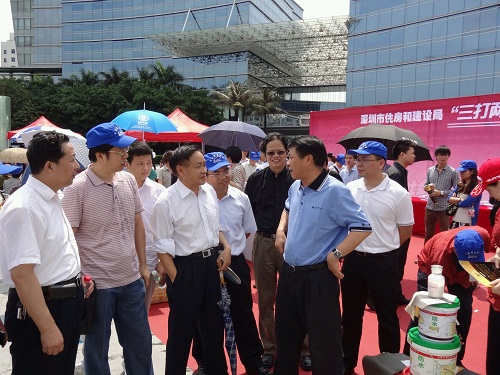 2012年4月29日上午在福田區(qū)的新城市廣場,由深圳市住房和建設局主辦“三打兩建”現(xiàn)場宣傳活動,市住房和建設局領導、市場監(jiān)督管理局局長親臨現(xiàn)場、市工程質量監(jiān)督總站、市建筑業(yè)協(xié)會、市防水協(xié)會領導高度重視,現(xiàn)場接受咨詢,此次活動得到了各企業(yè)、新聞媒體及廣大市民的積極響應。展示現(xiàn)場備受局領導和市民關注的有:“黑豹”牌聚合物水泥防水涂料(真、假品);防水卷材、結晶型防水材料(真、假品),還有燃器(具)、鋼筋、水泥、消防器材、安全設施及防護器具等。